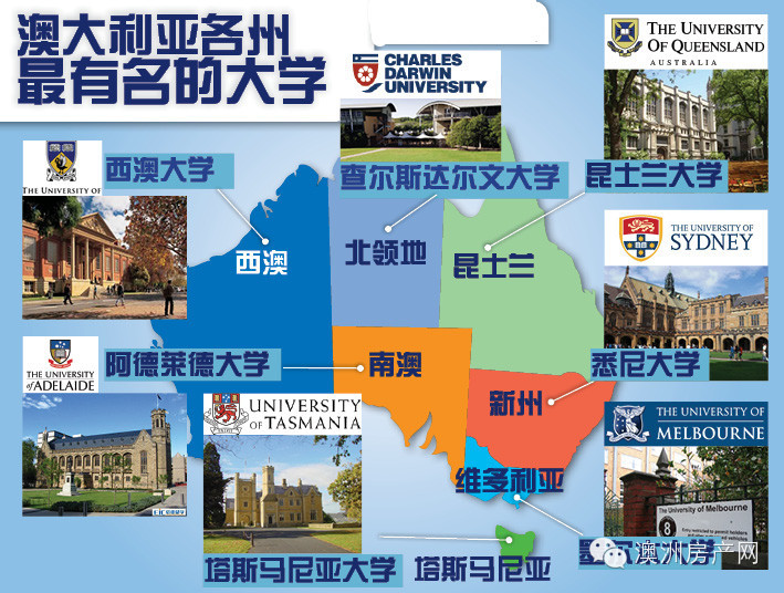 澳大利亚各州最有名的大学: