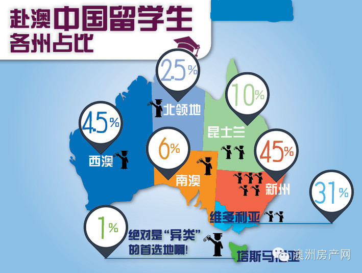 赴澳中国留学生各州占比: