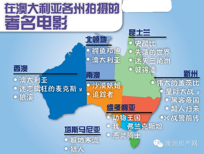 在澳大利亚各州拍摄的著名电影: