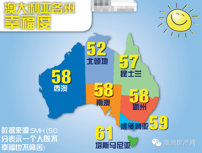 澳大利亚各州幸福度: