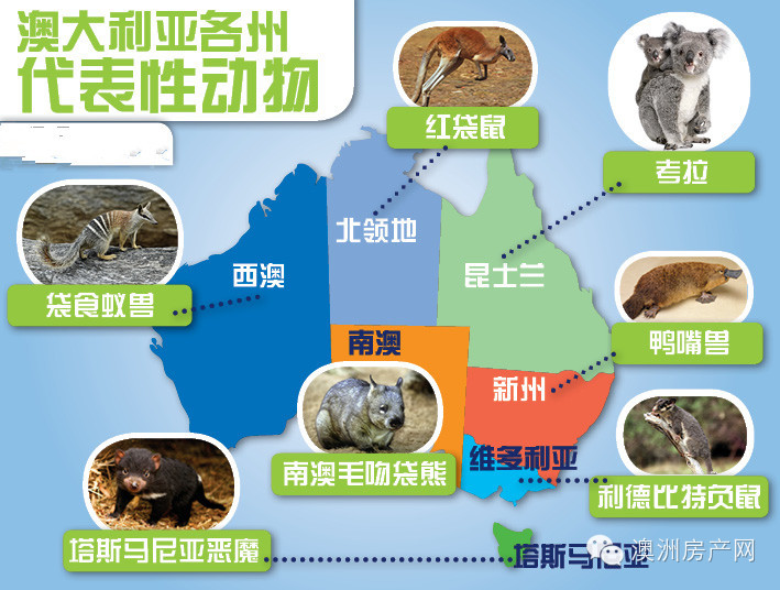 澳大利亚各州代表动物: