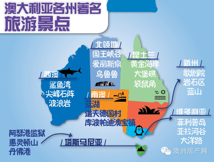 澳大利亚各州著名旅游景点: