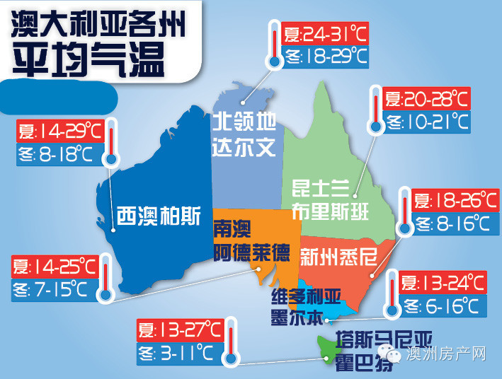 澳大利亚各州平均温度: