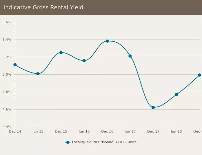 South Brisbane区公寓租金回报率