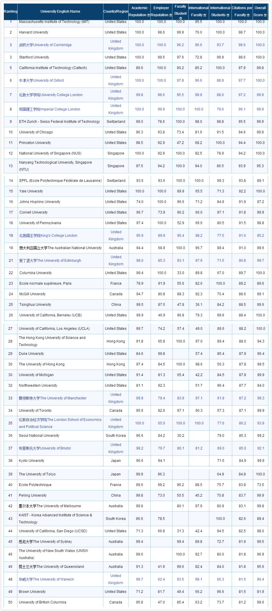据悉,这份排名是根据研究论文的引用数量、学术界及毕业生雇主作出的声誉调查综合得出。