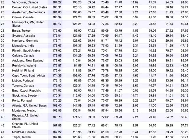 除此之外,Numbeo的排名并不是一年评定一次,相反是,每半年评定一次。迄今为止,为第76次发布最宜居城市排名!