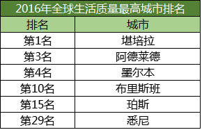 紧接其后的澳洲城市包括,第10的昆士兰州布里斯班,第15的西澳大利亚州珀斯,和第29的新南威尔士州悉尼!