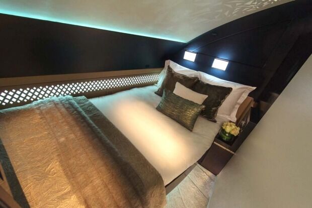 阿提哈德航空的超级空客以“空中寓所”(The Residence)为特色,这是一个3居室的“公寓”,位于头等舱上层,从悉尼到阿布扎比市的航班,住这个寓所要大约2.7万澳元。