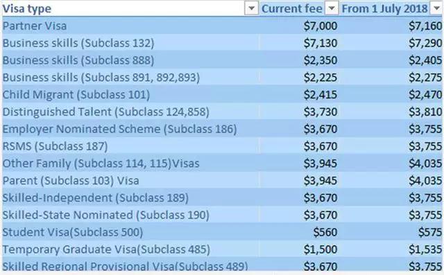包括技术移民,雇主担保,学生签证,配偶签证,父母签证…这些签证申请费用都有不同程度的增加!