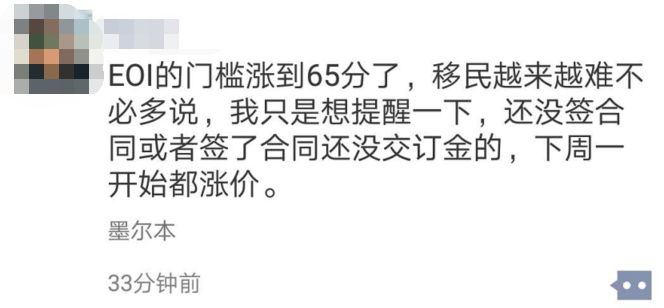 当然很多小伙伴说如今会计都80分了,工程类都要75,所以是60还是65都已经没关系了,不过危机感还是要有啊,眼看移民配额收紧,供不应求,谁知道会不会水涨船高,结果来个普涨呢?