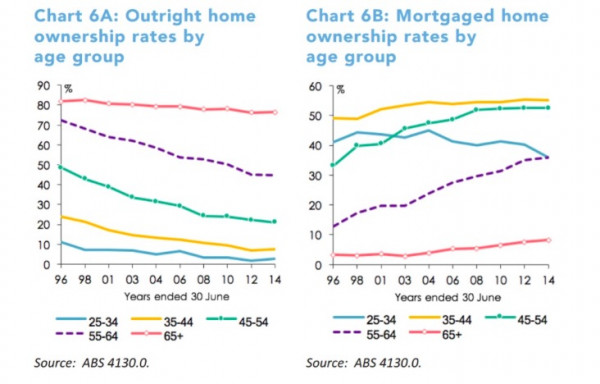 从年龄组别上来看,不同年龄段在房屋所有权上的区别也较大。Eslake表示澳洲人口的年龄结构变化掩盖了整体房屋产权所有率的下跌。