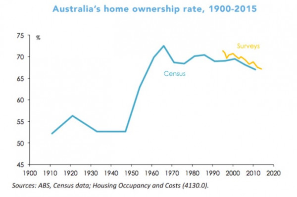 澳洲1900-2015年住房产权拥有率 (来源:澳洲统计局,统计数据)