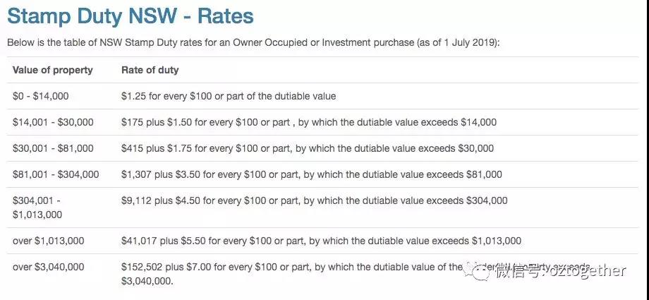 小编特意以悉尼为例,为大家找出了印花税的税阶