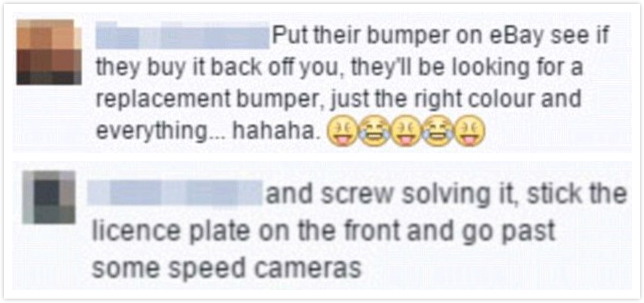 还有的网友出主意,建议被撞司机挂上车牌专门开车去超速监控附近“溜达溜达”,还有网友建议把车牌挂到eBay,看看谁来买!