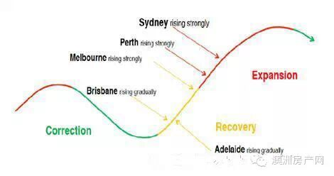 1.据澳洲当地房地产行业机构分析,澳洲各城市房地产现处于不同的行业周期。