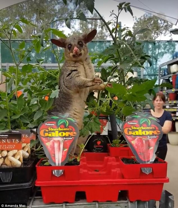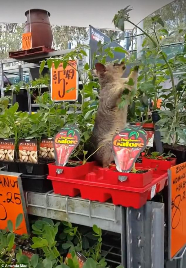 据《每日邮报》报道,这只负鼠一周内潜入到该商店两次,周日时布里斯本当地居民Amanda Mac拍到这只负鼠在一家Bunnings偷吃草莓叶。这只负鼠上周第一次被Yvonne McRostie拍到,是在布里斯本的Carseldine的Bunnings店里偷吃生菜。