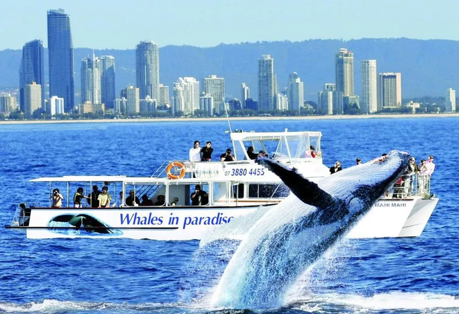 接下来如果你来到黄金海岸,可能在海上随时会看见鲸鱼的踪迹。黄金海岸一年四季气候宜人,每年从这个时候开始,有大批鲸鱼会从南极游向温暖的海域,这段时间也是一年中观鲸最好的时节。