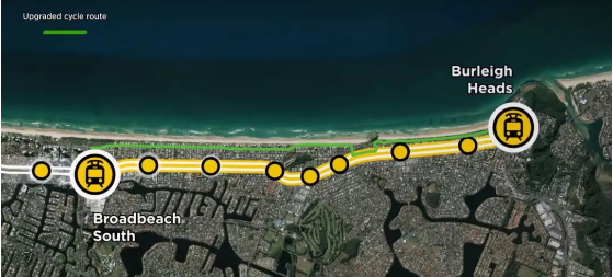 G-Link最初于2014年开通,Helensvale的扩建工程已于2017年底投入运营,目前进一步扩建已势在必行,并在今年2月政府已公布3A阶段的具体8个站点:分别为Mermaid Beach站,Mermaid Beach South站,Nobby Beach站,Miami North站,Miami站,Christine Avenue Station站,Second Avenue Burleigh站和Burleigh Heads站。