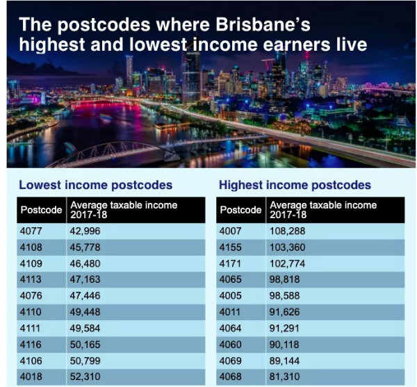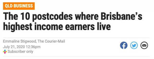 根据澳大利亚税务局(ATO)发布的应税收入数据,Courier Mail于7月20日报道了布里斯班的十大“富人区”和“穷人区”名单。
