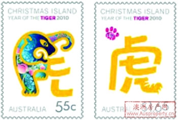 据澳洲《星岛日报》报道,为纪念2010农历新年虎年的来临,澳洲邮局特别推出一套由墨尔本设计师潘德妮设计的别致虎年邮票。