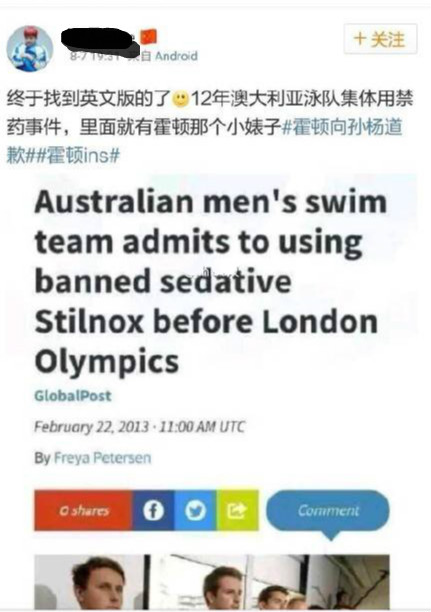 众所周知,孙杨只是误服兴奋剂,而霍顿却以此为把柄刻意攻击孙杨,也许这是霍顿的“舆论战术”,但这样的战术未免也太不光鲜!