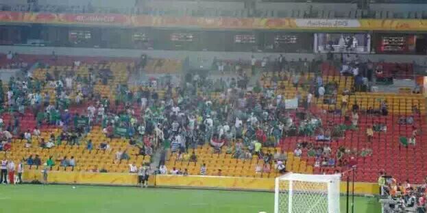 和中国同胞相比,沙特的球迷人数真是少得可怜!零零散散的几个沙特球迷!