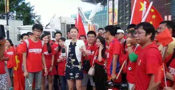 国足最终举得胜利之后,球迷高兴地接受了采访。