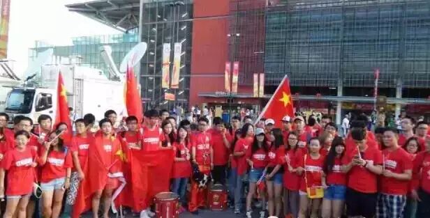 比赛还没开始!一群布里斯班当地华人就已经在球场外为国足加油助阵了!