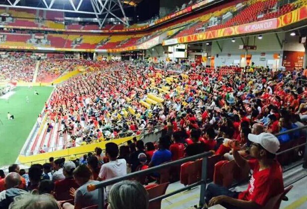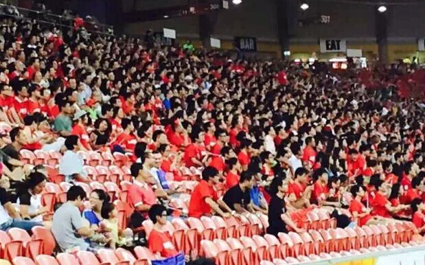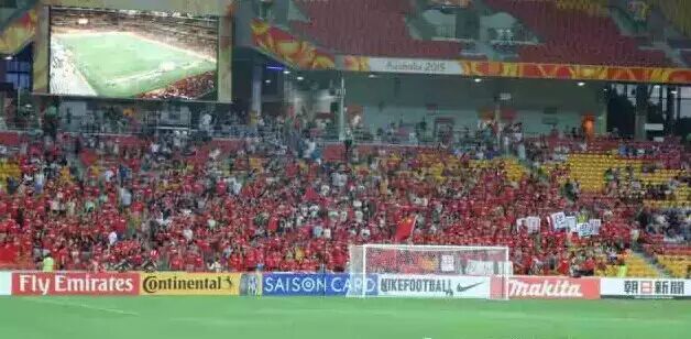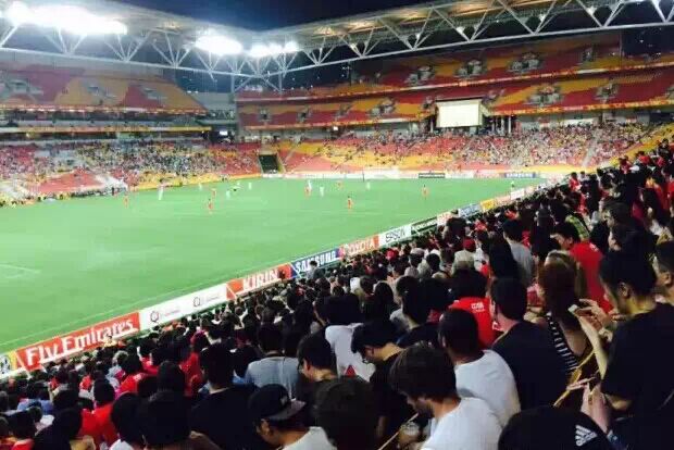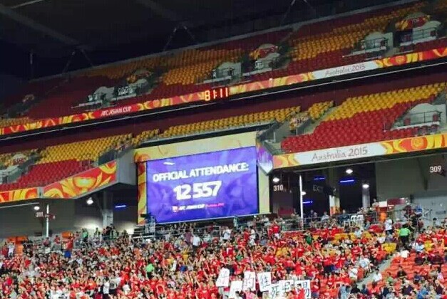 到场观众人数超过了1.2万人!其中中国球迷占到了绝大部分!甚至有不少布里斯班当地白人朋友脸上也画着中国国旗,手上也拿着中国国旗。