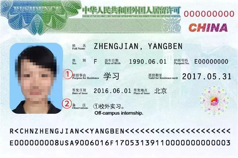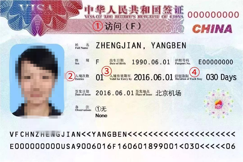 ③ 入境有效期至:图中2016.06.01,代表持证人只能在2016年6月1日前进入中国;
