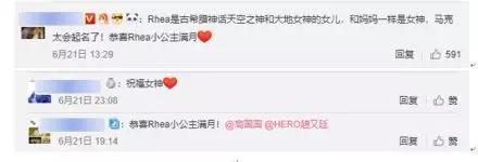 根据凤凰网娱乐的解释:“Rhea”的英文含义是古希腊神话中的第二代天后,是对小公主的美好期望。