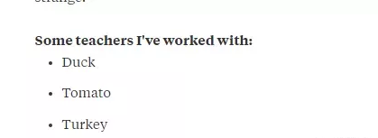 这位国外的老师就分享说,不仅是自己学校的同事叫Duck鸭子、Tomato西红柿、Turkey火鸡这些奇怪的名字。