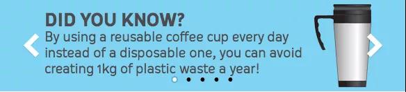 如果你每天用可重复使用的咖啡杯代替一次性咖啡杯,每年将会少产生一公斤的塑料垃圾;