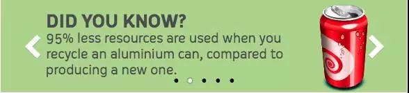 当你回收一个铝制易拉罐时,就会为生产一个新易拉罐节省95%的原材料;