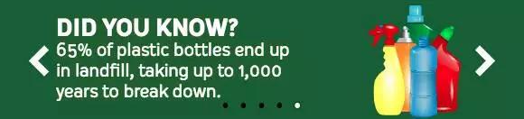 65%的塑料瓶子如果被误放到土地里,需要花费1000年以上的时间降解。