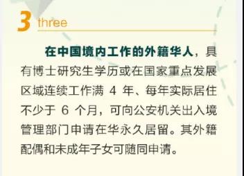 更让人惊喜的是,新政实施后,具有高学历、高收入、在华长期工作及创业的外籍人士将可以携带外籍配偶及未成年子女在中国申请永居签证。
