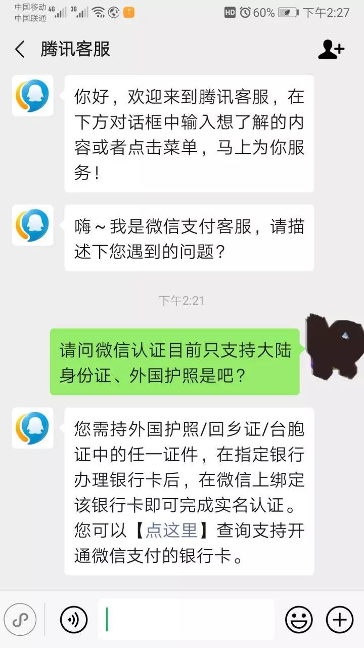 他一回国就想申请注册微信,但是却在微信支付开通上卡住了。