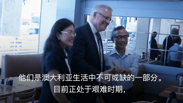 “我鼓励大家去支持企业,特别是那些澳大利亚华人企业,因为他们确实做的很棒,”莫里森称,“尽管华人社区面临巨大压力,处境艰难,他们是澳大利亚生活中不可或缺的一部分,目前正处于艰难时期,对澳大利亚华人社区尤其如此。”