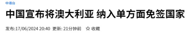 6月17日,中国总理在访问澳洲期间宣布了一个重磅消息: