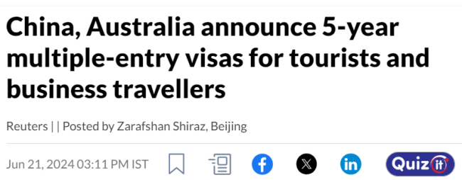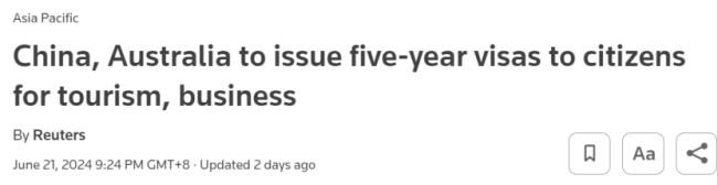 此前,中国公民可获得最长 1 年的签证前往澳大利亚旅游,经常出国的游客可获得最长 10 年的签证 澳洲总理阿尔巴尼斯表示: