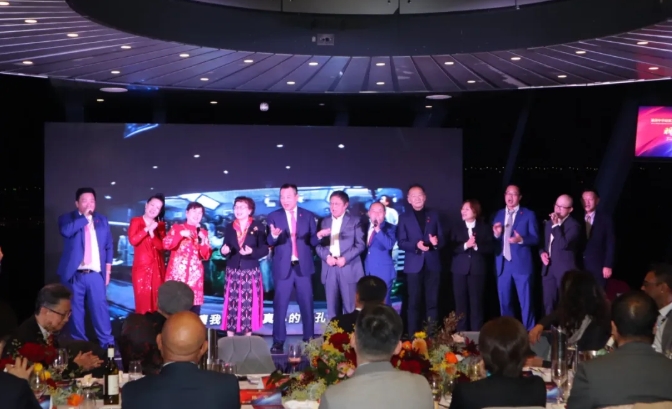 晚上5时30分许,华贸会成员集体登台,合力献唱华贸会会歌,庆祝活动也正式拉开帷幕。