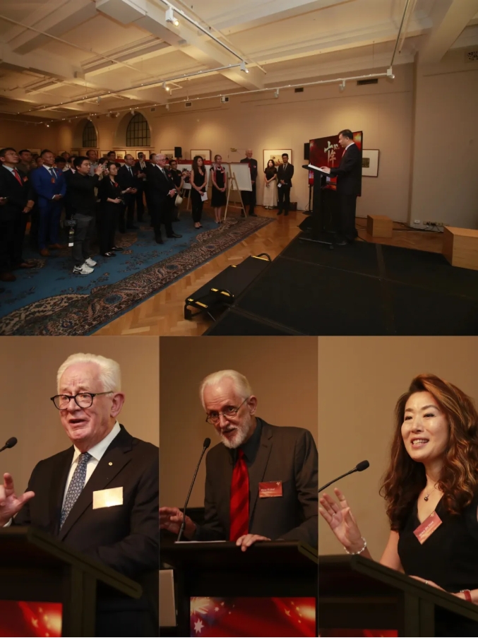 罗布等高度评价中澳关系发展成就,希望两国关系继续保持稳定健康发展势头。来宾们共叙友谊,纷纷驻足观展。