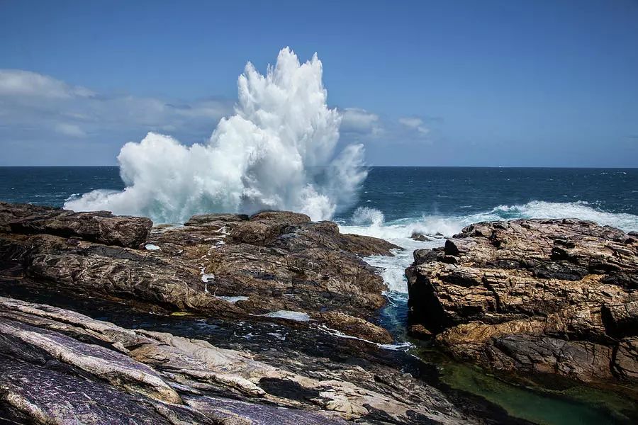 他请同行的家庭帮忙拍照,要求是,抓拍到海浪击打岩石时,水花四溅的瞬间。
