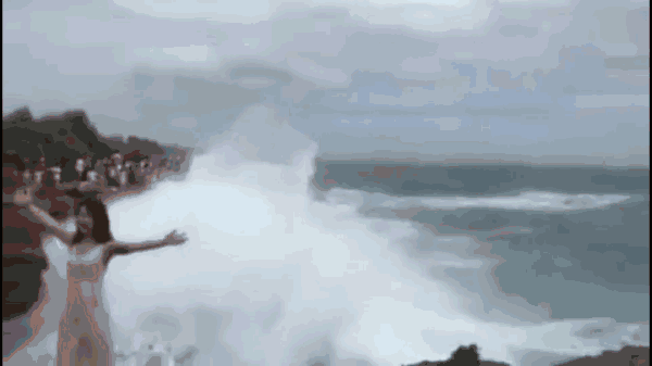 今年3月15日,一名女游客在印度尼西亚巴厘岛的Nusa Lembongan海岸边拍照时,当时身后的海浪非常大。据称她不顾警告,坚持要在悬崖边拍照,结果被巨浪卷走,连拍照人都没有幸免。