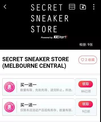 SECRET SNEAKER STORE:部分潮牌精选半价;还有买一送一的优惠券可以领!小编感觉这一年的衣服都有了着落!