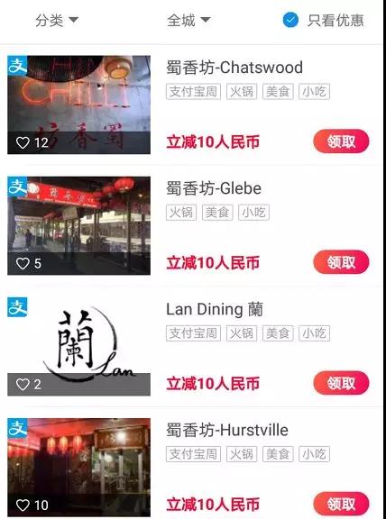 不要闹心,支付宝本次活动,也覆盖了澳洲其他城市!