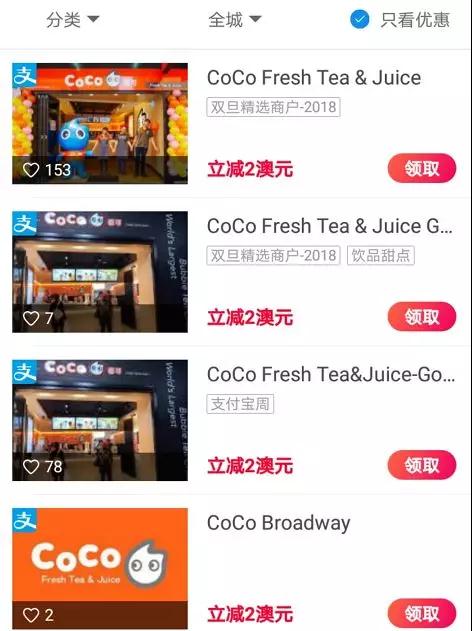 Coco奶茶:消费满10澳币立减2澳币!