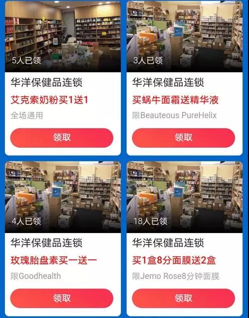 华洋保健品连锁:艾克索奶粉买1送1;卖蜗牛霜送精华液;玫瑰胎盘素买一送以,买1盒8分面膜送2盒!