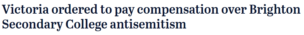 刚刚,在澳洲联邦法院法庭上,法官认定墨尔本东南一所公校的校长没能保护曾经的五名犹太学生,让他们遭受了反犹太主义的欺凌,校长也引咎辞职。同时,维州政府也被裁决要向受害学生道歉,并向他们赔偿43万澳元。