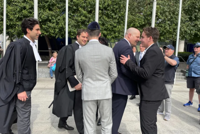 (前学生 Matt 和 Joel Kaplan 离开法庭)